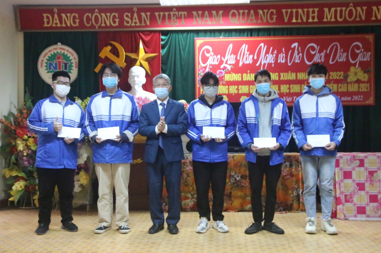 Để động viên và khích lệ tinh thần giảng dạy và học tập của thầy và trò, nhân dịp đầu xuân năm mới nhà trường đã tổ chức khen thưởng cho các em học sinh có điểm thi đại học cao năm học 2021, học sinh giỏi cấp tỉnh và các tổ chức - cá nhân có thành tích xuất sắc trong tháng 1.