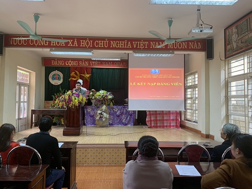 Đồng chí Bùi Thị Phương – Bí thư Chi bộ đã đọc và trao quyết định kết nạp đảng cho quần chúng Đinh Nguyễn Khuyến và Vũ Thị Hoa. Hai đồng chí cũng đã đọc lời tuyên thệ và tiếp thu những lời căn dặn của đại diện Chi ủy về nghĩa vụ của người đảng viên.