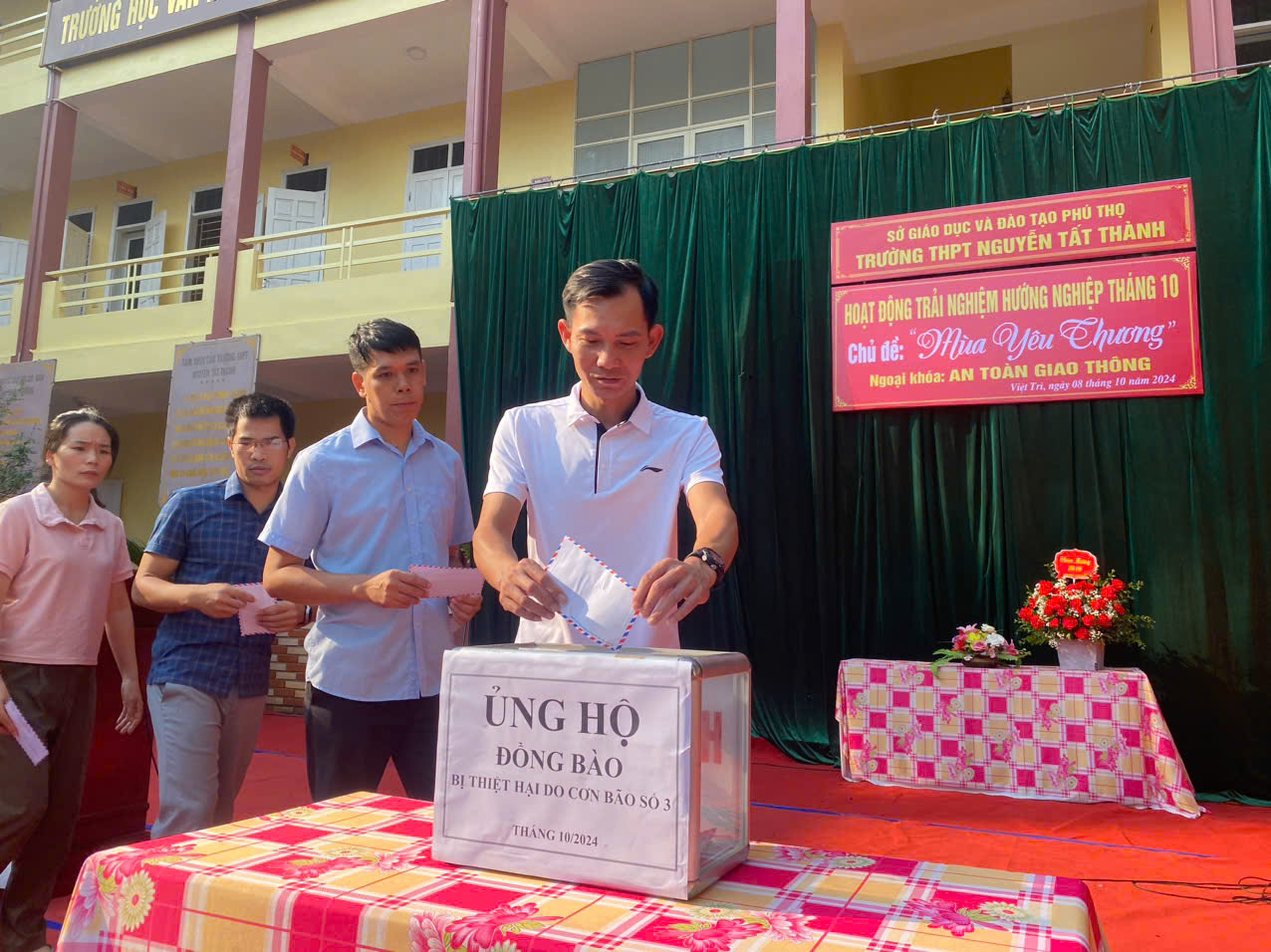 ❤️ Với tinh thần "Đồng hành cùng cả nước, chia sẻ đau thương, mất mát, khó khăn với người dân các tỉnh, thành phố phía Bắc bị thiên tai gây ra". Sáng 08/10/2024 Công đoàn và Đoàn thanh niên nhà trường kêu gọi lòng hảo tâm của cán bộ giáo viên, nhân viên, người lao động và các em học sinh trong nhà trường phát huy tinh thần "tương thân tương ái", bằng hành động thiết thực, đóng góp, ủng hộ, chung tay góp phần cùng cả nước nhanh hỗ trợ ổn định đời sống cho đồng bào các tỉnh, thành phố phía Bắc đang gánh chịu hậu quả thiên tai.