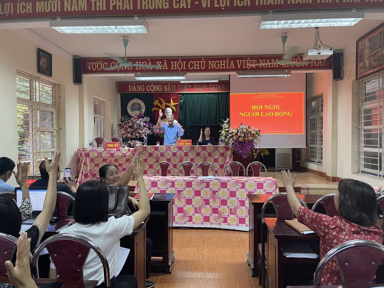 Tại Hội nghị, cô Bùi Thị Phương – Bí thư chi bộ – Phó hiệu trưởng nhà trường đã tổng kết công tác hoạt động của nhà trường trong năm học 2021 – 2022; Thầy Nguyễn Văn Thư – Hiệu trưởng nhà trường thông qua trước Hội nghị văn bản quy định xếp loại thi đua tập thể và cá nhân trong tháng và năm học; quy chế chi tiêu nội bộ và các văn bản chỉ tiêu chuyên môn khác.Cũng tại Hội nghị, cô giáo Bùi Thanh Hoa – Phó hiệu trưởng nhà trường cũng đã triển khai những nội dung quan trọng liên quan tới công tác chuyên môn, đặc biệt các văn bản liên quan tới chương trình giáo dục phổ thông mới.