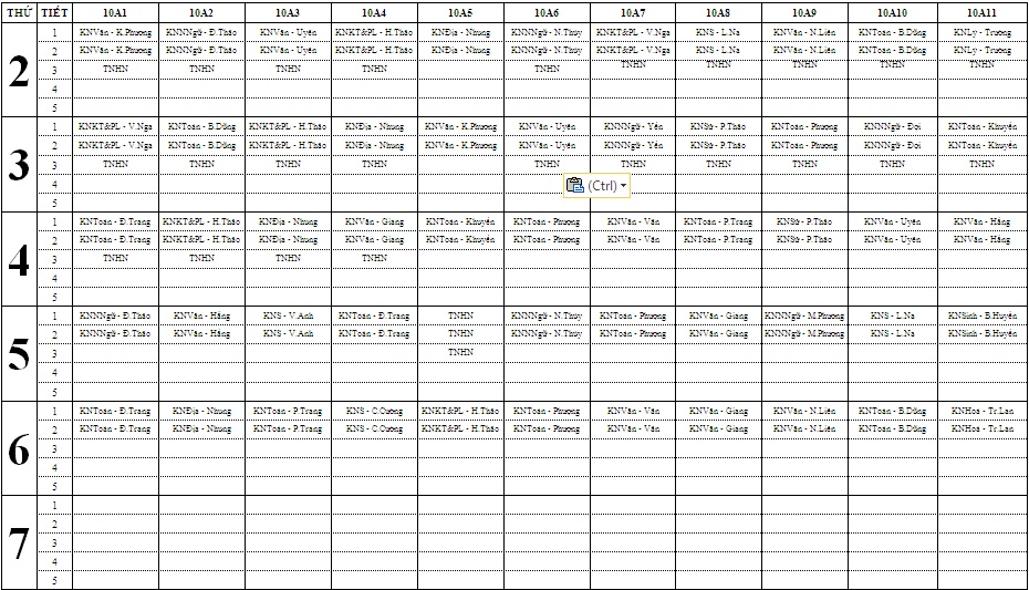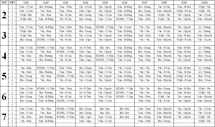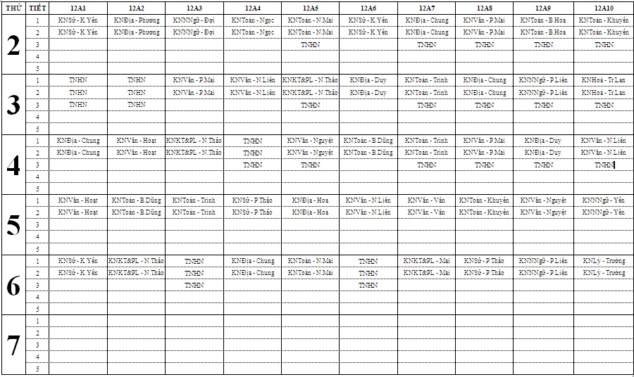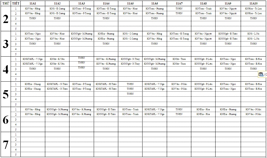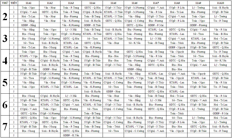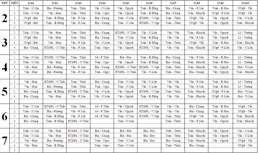 Thời khóa biểu tuần từ,06/04/2026 đến 11/04/2026