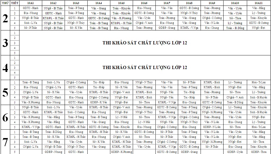 THỜI KHOÁ BIỂU TUẦN TỪ 13/4/2026 ĐẾN 18/4/2026