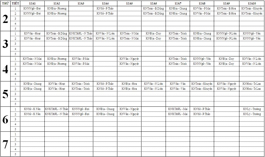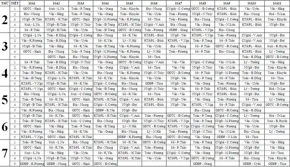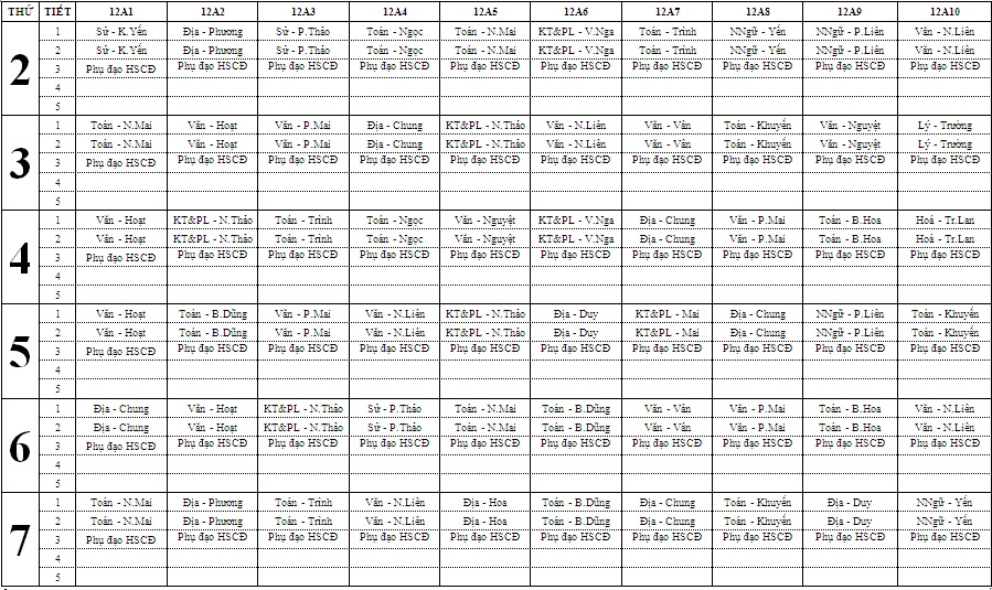 THỜI KHOÁ BIỂU TUẦN TỪ 20/4/2026 ĐẾN 25/4/2026