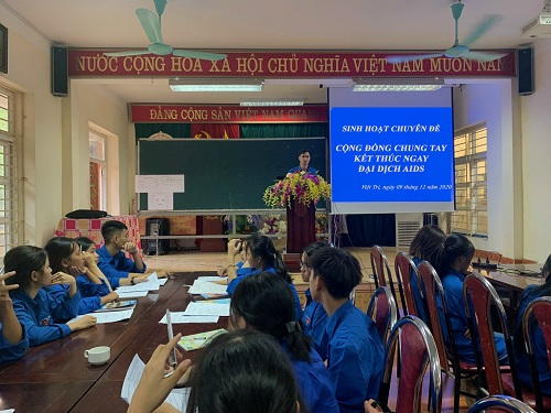 Thực hiện kế hoạch số 1612/SGD&ĐT-GDTrH về việc tổ chức Tháng hành động Quốc gia phòng, chống HIV/AIDS năm 2020 của Sở Giáo dục và Đào tạo Phú Thọ, được sự nhất trí của Ban lãnh đạo trường, sáng ngày 9/12/2020, Đoàn trường THPT Nguyễn Tất Thành đã tổ chức một buổi sinh hoạt chuyên đề với chủ đề “Cộng đồng chung tay – Kết thúc ngay đại dịch AIDS”.