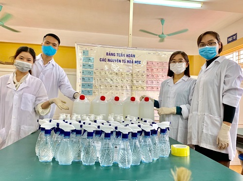 Ngày 14/2/2020, nhóm Hóa – Sinh cùng Chi đoàn giáo viên trường THPT Nguyễn Tất Thành đã pha chế thành công nước rửa tay khô sát khuẩn theo đúng công thức của WHO. Bước đầu, nhóm đã pha chế được 60 lít nước rửa tay khô sát khuẩn với thành phần chính là Ethanol 70%, Glyxerin thực vật, hương liệu ( tinh dầu quế), Betadine 1% có khả năng sát khuẩn cao, không làm hại da tay, có mùi hương dễ chịu, phù hợp với mọi người. Sản phẩm được đưa vào sử dụng miễn phí cho cán bộ, giáo viên, nhân viên và học sinh của nhà trường.