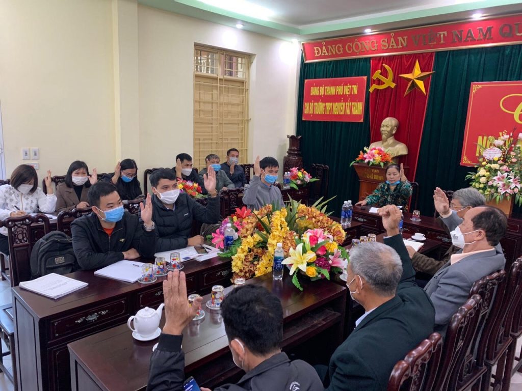 Nhằm phát huy tinh thần tương thân tương ái, “lá lành đùm lá rách”, cùng mong uốn góp phần đem lại một cái Tết ấm áp hơn, vào ngày 6/2/2021 (tức ngày 25 Tết) Ban lãnh đạo trường THPT Nguyễn Tất Thành mà trực tiếp là thầy giáo Nguyễn Văn Thư –Hiệu trưởng nhà trường, cô giáo Bùi Thị Phương – Bí thư Chi bộ, Phó hiệu trưởng nhà trường dã đến khu dân cư Dữu Lâu, thành phố Việt Trì, tỉnh Phú Thọ (quê hương của thầy Nguyễn Văn Thư) để tổ chức thăm hỏi, động viên và tặng 9 suất quà Tết cho các gia đình hộ nghèo và cận nghèo tại khu dân cư với mỗi suất quà trị giá gần 1 triệu đồng.